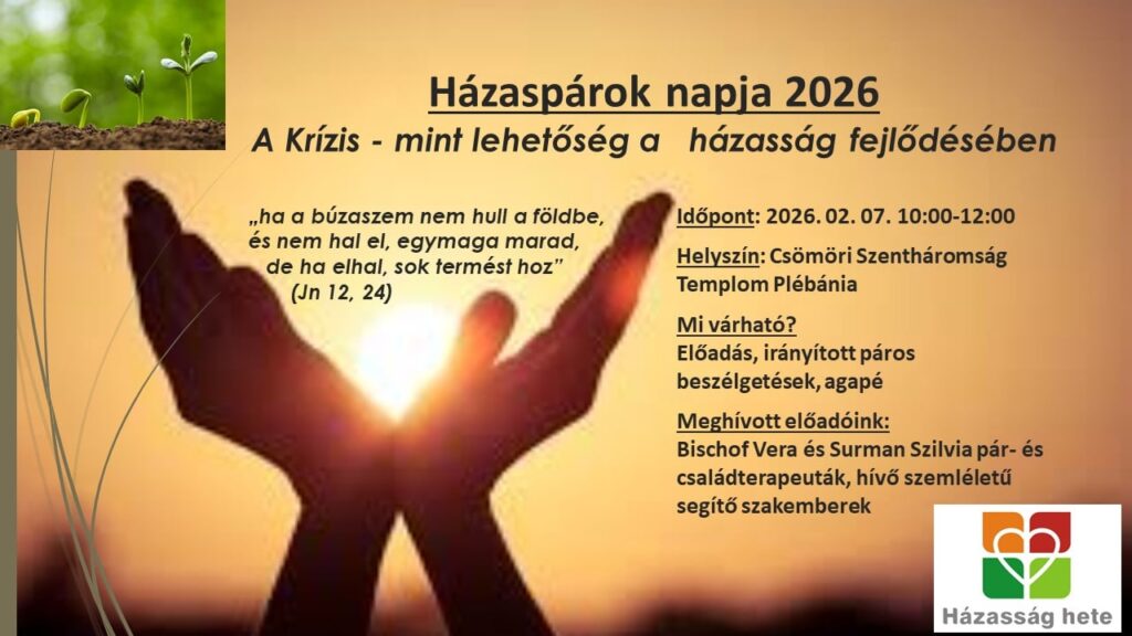 2026. február 7-én 10:00 – 12:00 óráig tartjuk a csömöri plébánián a házaspárok napját.